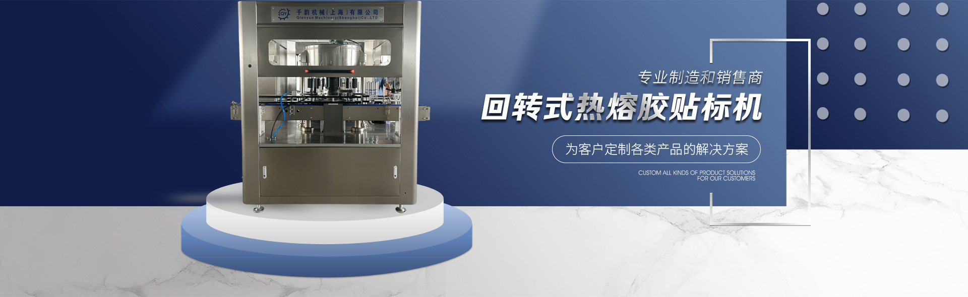 千韻機械(上海)有限公司,是包裝機械設備的專業制造和銷售商。公司主要產品有:回轉式熱熔膠貼標機,直線式熱熔膠貼標機,高速套標機,雙面貼標機,單面貼標機。